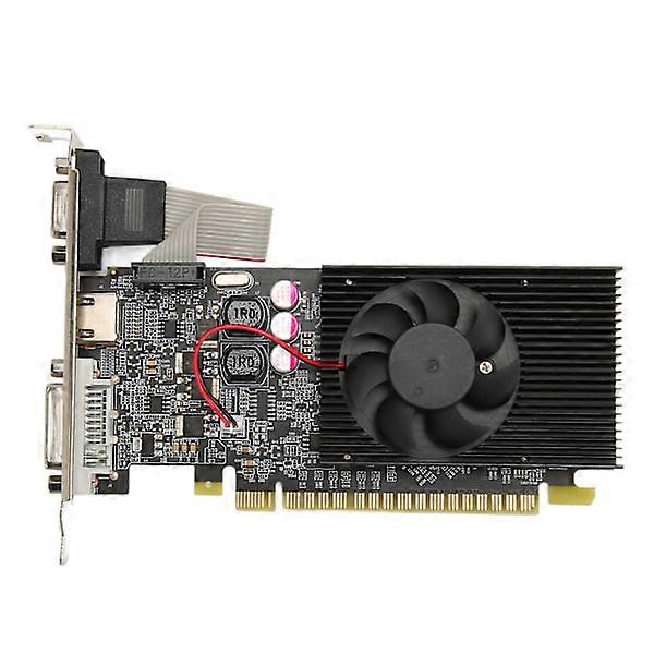 Welcome to our store! Elevate Your Gaming: This 1GB DDR3 graphics card delivers powerful image processing for smooth performance and stable visuals, offering a superior gaming experience. Multiple Interfaces: Equipped with a PCI Express X16 2.0 bus interface, High Definition Multimedia Interface x1, DVI x1, and VGA x1 display interfaces, ensuring compatibility with a wide range of devices. Silent Cooling Fan: This computer graphics card strikes the perfect balance between silence and cooling. The slow operation of the cooling fan ensures a quiet user experience without compromising heat dissipation. Durable PCB Material: The graphics card utilizes a PCB material, ensuring stability, durability, and a long lifespan. It can withstand continuous use and provides reliable performance even under demanding conditions. Easy Installation: The gaming computer graphics card is the perfect choice for gaming enthusiasts. It features a compact size, lightweight design, and easy installation. Item Type: Graphics Card Material: PCB + Metal Core Code and Process: GF119/40nm Unified Shaders: 48 Core Frequency or Memory Frequency: 500 266MHz Memory Capacity and Specifications: 1G 64-bit DDR3 Output Interface: DVI + VGA + High Definition Multimedia Interface Bus Interface: PCI-Express 2.0 x 16 Cooling Fan: Yes Package Includes: 1 x Graphics Card 1 x Manual