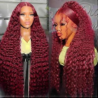 28 Inch Burgundy Lace Front Wig Human Hair 13x6 Deep Wave 280 Density Pre Plucked Natural Hairline