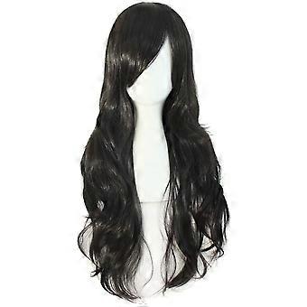 28" 70cm pitkät kiharat hiukset Puku Cosplay peruukki naisille tyttö (musta)