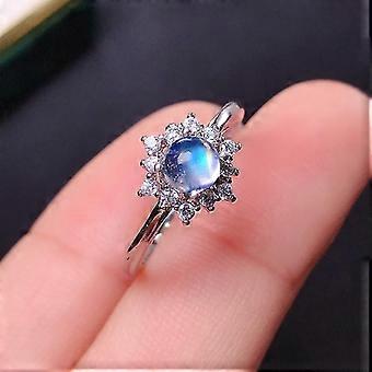 هدية لصديقة عاشق 925 الفضة الإسترليني طبيعي الأزرق حجر القمر ترصيع طبيعي أزرق ضوء القمر المرأة خاتم الهدايا لصديقة Yougang