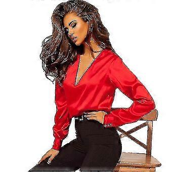 بلوزة بفتحة رقبة على شكل حرف V، بلوزة بأكمام طويلة، بلوزة حريرية