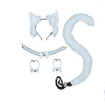 Cat Ears Wolf Fox Ears Tail Set - Söpöt eläinpään tarvikkeet Halloween-pukuun (valkoinen)
