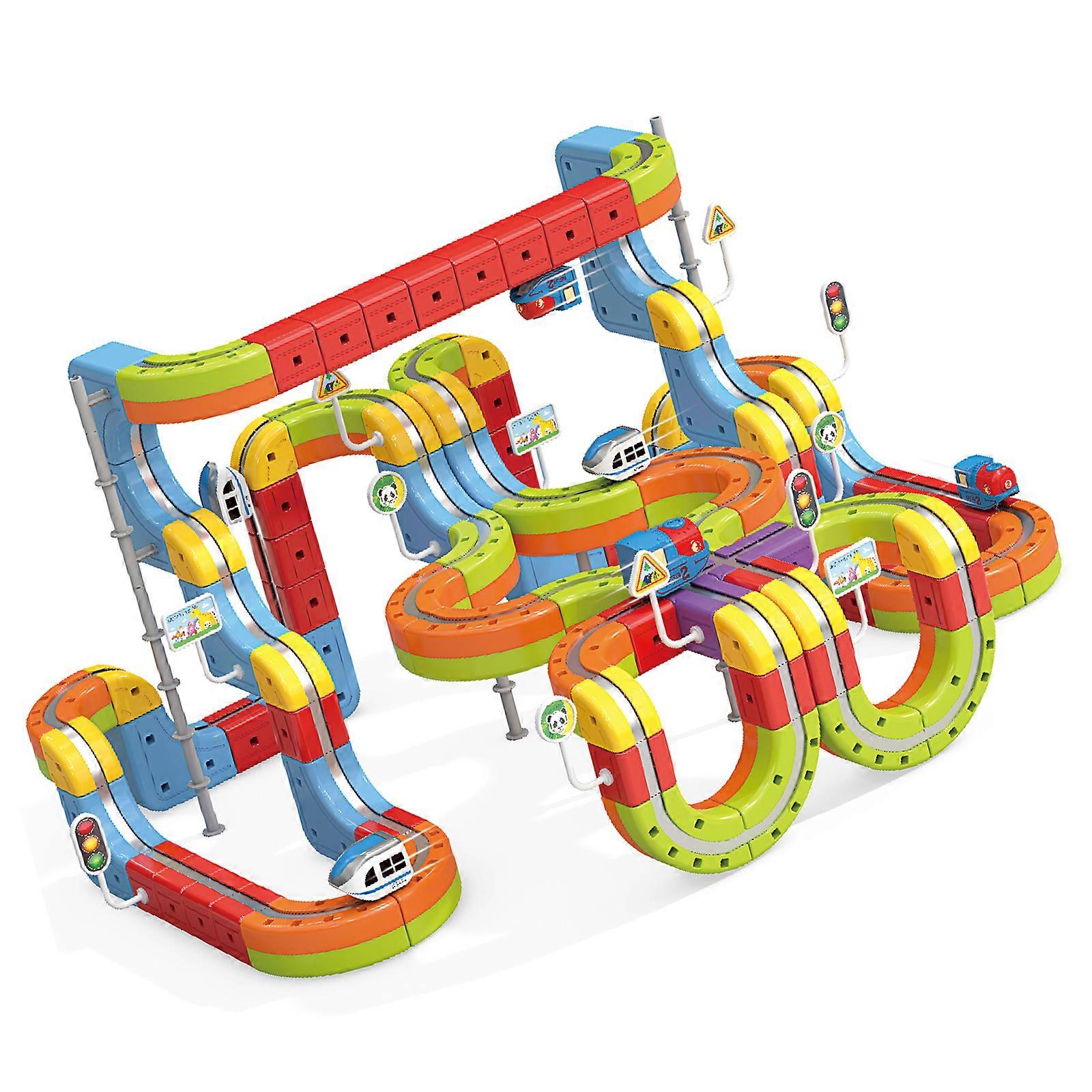 Magical Track Train 3D Building Tracks Magnetic Building Block Cubes Rails & Signs STEM Educational Toy for Children Multicolor