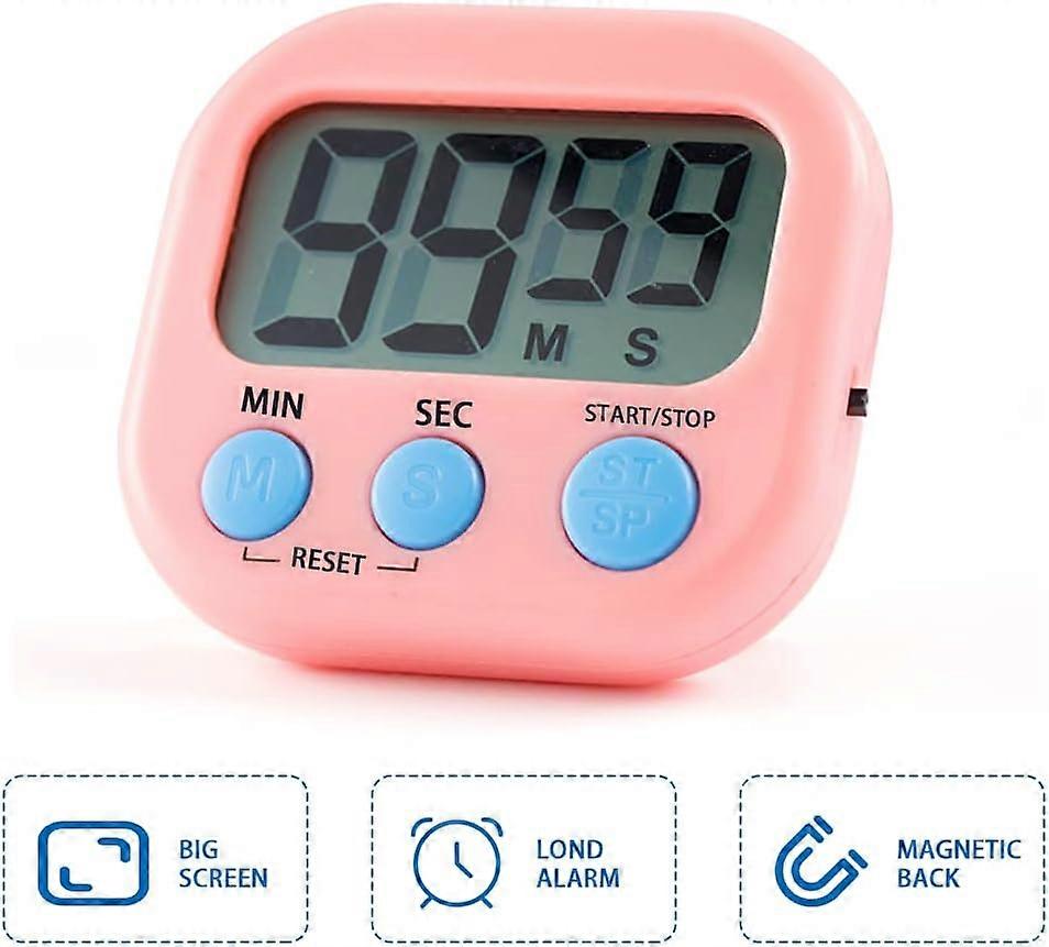 Magnetic Kitchen Timer, Cooking, Learning Timer, Loud Alarm and Countdown Timer with LCD Display Pink