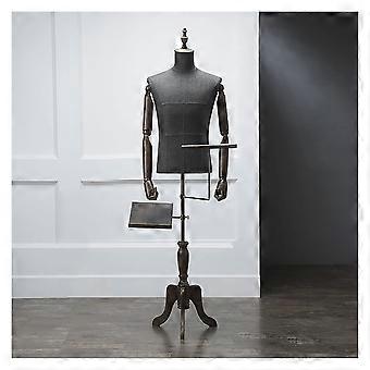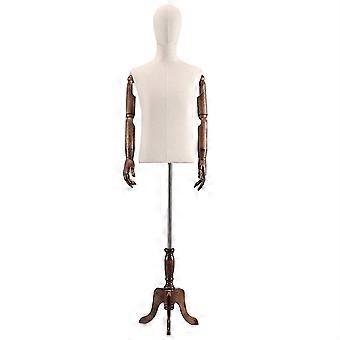 Adult Male Adjustable Mannequin Torso with Wooden Arms Linen Dress Form on Stable Metal Base