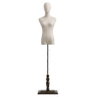 Tailors Dummy Mannequin Adjustable Dress Form with Wooden Arms Linen Cover and Stable Round Base