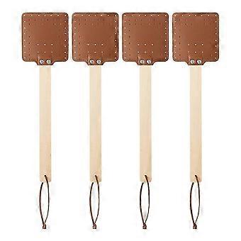 4 قطع من الجلد ذبابة منشة مقبض طويل يدوي Swat مقبض معدني Flyswatter ملون ريفي ذبابة منشة للمطبخ في الأماكن المغلقة في الهواء الطلق ، 4 ألوان (روي