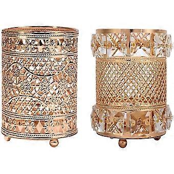 2 حزمة كريستال ماكياج فرشاة جرة، ماكياج فرشاة كريستال المنظم(الذهب)