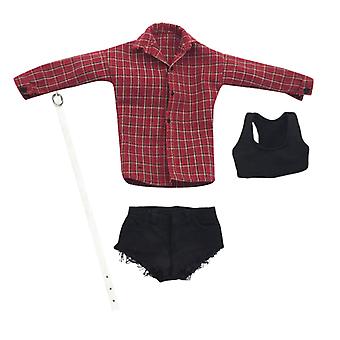 1/6 Naisten liivi T-paita 12'' Action Figure Lyhyt housu Punainen ruudullinen paita