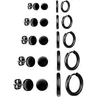 أزواج الأقراط مسمار أسود للرجال النساء أقراط الفولاذ المقاوم للصدأ 4-10 مم مسامير الأذن المستديرة الأذنين المقابس المسمار ترصيع
