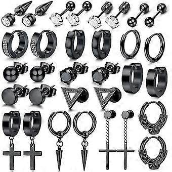 أقراط مسمار رجالي ، أقراط فاسق من الفولاذ المقاوم للصدأ فضة سوداء سبايك ترصيع أذن للأولاد أقراط هيبوالرجينيك ثقب مجوهرات نسائية ، 4Pairsearrings ل
