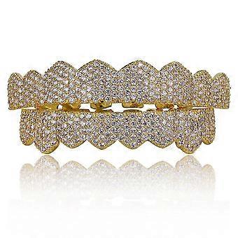 الهيب هوب الذهب والفضة اللون مثلج خارج الأسنان جريلز مايكرو تمهيد مكعب الزركون أعلى أسفل حزب الأسنان مشاوي مجموعة هدية المجوهرات