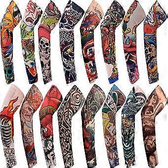 ذراع الوشم الأكمام، 6 حزمة الرجال وهمية مؤقتة الوشم النايلون كم الذراع جوارب مرنة راكب الدراجة الأكمام لعيد الهالوين