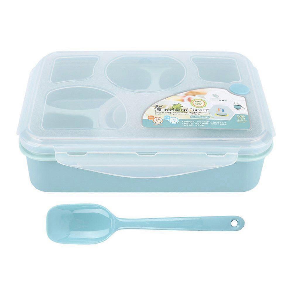 Microwave Bento Lunch Box, 5 Compartments Portable Food Fruit Container with Bowl and Spoon (Blue)