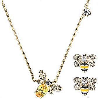 مجموعة مجوهرات نسائية من طوق النحل والأقراط مجموعات من المجوهرات المطلية بالذهب 18k