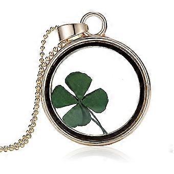 بسيطة شفافة المجففة أربع أوراق البرسيم كريستال الذهب اللون جولة سلسلة طويلة Acsergery هدية LINCMAN