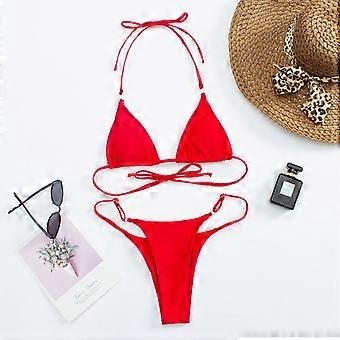 مثلث بيكيني مجموعة السباغيتي حزام Crisscross عالية القطع 2 قطعة ملابس السباحة الدانتيل حتى الأشرطة بدلة السباحة أحمر L