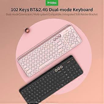MIIIW 102 Keys Wireless BT&2.4GHz Dual-mode Office Keyboard with Integrated Soft Rubber Bracket Multi-system Compatible Pink