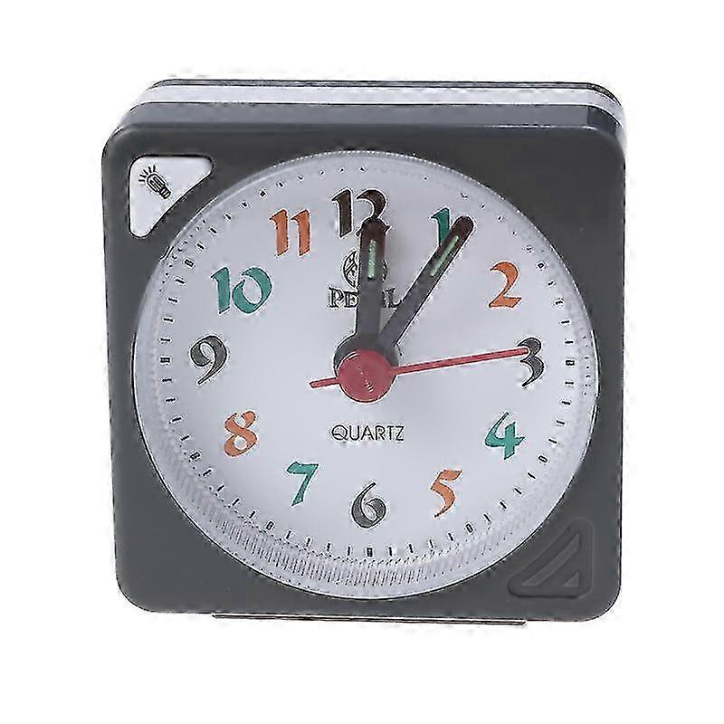 Mini Clock Square Plastic Quartz Alarm Clock Portable Lightweight Durable Clock (Grey)
