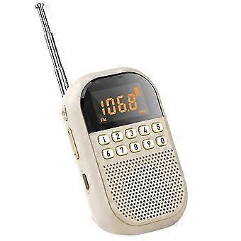Mini Pocket FM AM Radio Large LCD Display DSP Radios Receiver Wireless Bluetooth Speaker TF Card Music Player for Elder 9K/10K. Real-time display. LED oversized LCD display, radio frequency, play mode, battery level and other information display. Digital station/track selection. When we want to listen to a certain radio station or track, we can quickly listen to it by directly inputting the number. Power failure automatic memory. Power failure memory, no matter it is a sudden power failure or power off, from where it stops, it starts, TF memory card playback and radio station memory. Enhanced extended antenna. DSP digital tuning radio chip, FM FM, MW multi-band broadcasting, receive a stronger and more stable signal. Wireless Bluetooth playback Equipped with a high-speed Bluetooth chip, it can stably connect to smart audio devices such as cell phones, tablets, laptops, etc. Multiple Listening Options<br><br>In addition to listening to radio, you can also insert a TF memory card to play MP3/WMA music, 3.5mm headphones to listen to, more than one mode, more than one listening experience. 1100mAh Large Capacity Built-in 1100mAh high-capacity lithium battery, Type-C charging cable charging, low power design, get rid of power anxiety. Product Parameters: 1.Product Name: MI04 AM FM mini radio 2. Product Features: Mini Portable Rechargeable LED Display 3. Frequency Range FM 76-108MHz AM 522-1710 KHZ(9KHZ) 520-1710KHZ(10KHZ) 4. Battery: Polymer 1100Mah 3.7v 5. Receiving sensitivity: AM: 20mV FM 2.5UV 6. Signal-to-noise ratio: AM: 30dB FM: :45DB 7. Maximum output power: 1W 8. External power supply: TYPE-C 5V 9. Maximum playback current: AM: 540MA, FM: 520MA 10. External audio port: 3.5MM/32X2 11. Three ways to search stations: manual search/semi-automatic search/full-automatic search 12. Number of stations:30 13. Product weight: 164.3g Color: A:Champagne Material: plastic<br><br>Package Contents: 1 * Bluetooth Radio<br><br>Only the above package content, other products are not included. Note: Light reflection and different displays may cause the color of the item in the picture a little different from the real thing. The measurement allowed error is +/- 1-3cm.