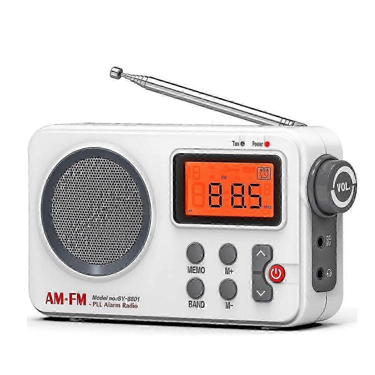 Rception super puissante du signalLa puce anti-interfrence DSP est utilise pour amliorer efficacement la sensibilit de la radio. Antenne rtractable Prend en charge les signaux ultra larges dans 2 bandes de FM (87,5-108 MHz) et AM (522-1620 KHz). La puissante fonction de rception du signal vous permet d'couter facilement de la musique, des informations, des informations sur le trafic, des informations sur les aliments et d'autres programmes, quel que soit le pays / la rgion / l'environnement difficile dans lequel vous vous trouvez.coute au casque stro et haut-parleurs clairsLa petite radio avec de grands haut-parleurs stro intgrs de 3W peut facilement remplir une pice entire avec des basses profondes, des sons aigus doux et des sons clairs. La radio prend en charge une prise casque standard de 3,5 mm qui vous permet de profiter de la musique confortablement, que vous soyez seul ou dans un environnement bruyant. Vous ne vous souciez pas d'tre drang ou de dranger les autres (remarque : non quip d'couteurs).Radio portable multifonctionsCette radio piles ne mesure que 14,5x8,5x3,5cm et ne pse que 275g, compacte et portable. L'heure peut tre rgle manuellement, ce qui vous permet de vrifier facilement l'heure. La fonction d'alarme vous permet de mieux planifier votre sommeil et votre travail. Et le son de l'alarme a un bip rtro classique pour rendre l'coute plus agrable. La minuterie de sommeil teint la radio l'heure que vous avez dfinie - idal pour couter la radio la nuit.2 MODE D'ALIMENTATION1.avec une alimentation DC 5V, vous pouvez alimenter la radio avec un powerbank / USB. (Mme si vous jouez l'extrieur, sans avoir vous soucier que les piles de la radio soient vides). 2. aliment par une batterie 4 * AA (non inclus), radio piles est adapt pour l'alimentation rapide et l'coute dans diverses situations pour viter les pannes de courant ou (Cable USB uniquement)Rglage des stations de radio prfresEn plus d'un bouton pour rechercher, enregistrer et numroter les stations, la petite radio prend galement en charge le prrglage manuel. Vous pouvez rgler un certain nombre de vos stations de radio prfres pour un accs rapide et facile.(Si vous avez des questions sur l'utilisation du produit ou d'autres problmes, veuillez nous contacter et nous vous aiderons rsoudre le problme)
