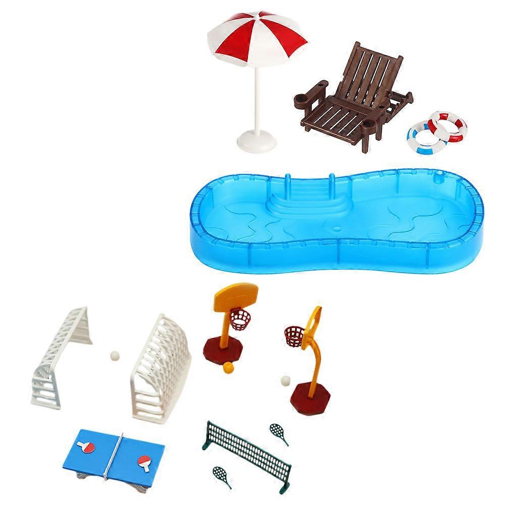 Crafted with precision, this dollhouse pool set offers a delightful combination of a swimming pool, swimming rings, and beach chairs. The accessories are designed to replicate real-life items, adding authenticity to your miniature scenes. Ideal for dollhouse enthusiasts, it provides a charming way to decorate and enjoy your tiny beach setup. Features -Color:Assorted Color -Material:Plastic -Size:20.00X9.00X2.00cm/7.86X3.54X0.79in -Comprehensive accessories: comes with a variety of mini decorations including a swimming pool, swim ring, beach chair, and more. -Detailed craftsmanship: hardwearing model design with realistic details and bright colors for an immersive play experience. -Portable and convenient: easy to assemble and carry, making it great for indoor and outdoor activities. -Enhances creativity: ideal for creating miniature landscapes, promoting hands-on skills and creativity. -Multifunctional play: provides numerous play options, encouraging imaginative and creative play for children Package list: 1 set x dollhouse Swimming pool furniture 1 set x dollhouse sports model