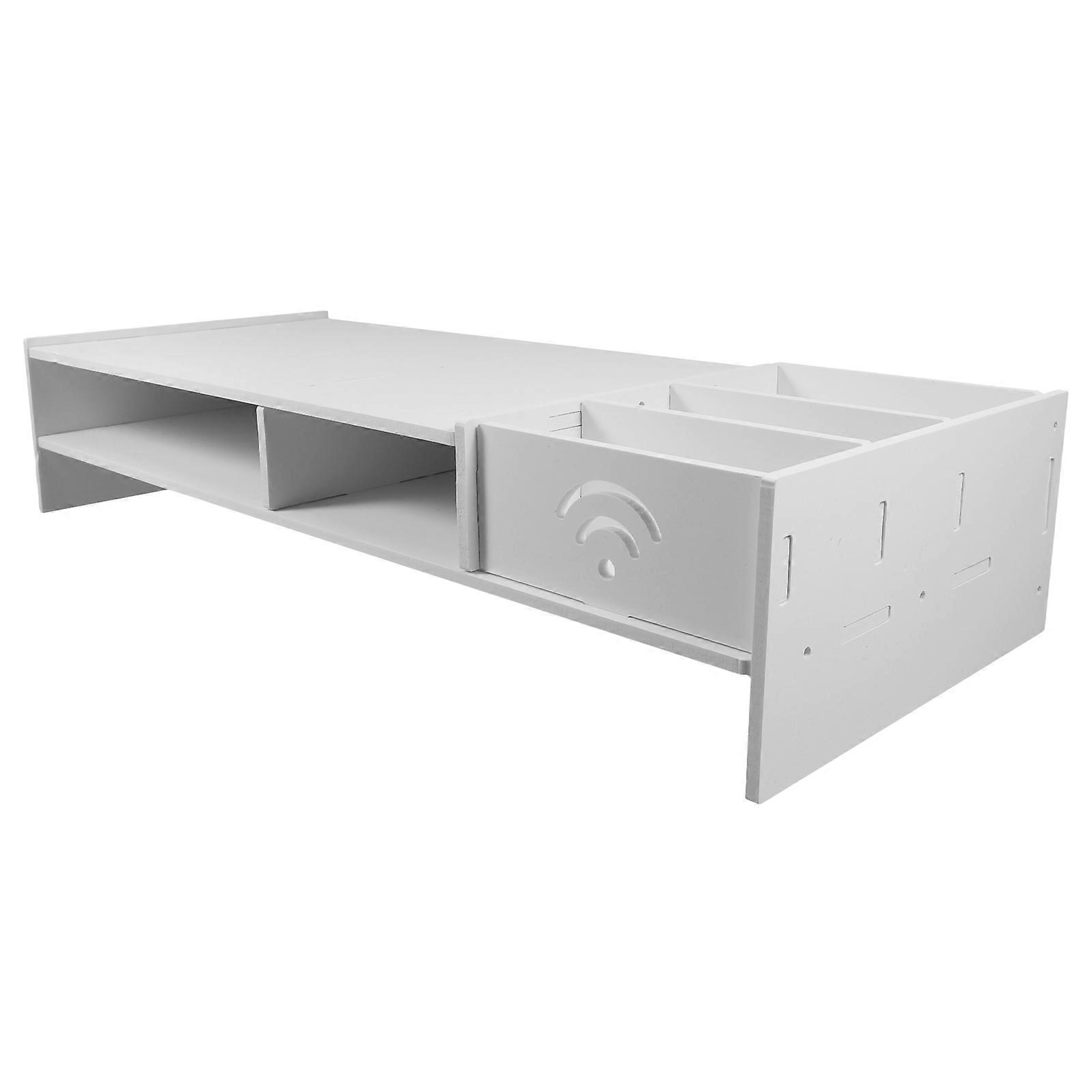 The monitor riser for desk is a versatile stand that can be used for various devices, including laptops and printers. Its sturdy construction ensures stability, and the multi-functional design allows for easy organization of your workspace. practical for enhancing productivity, it keeps your desk tidy and efficient. Features -Color:White -Material:Plastic -Size:49.00X20.40X10.00cm/19.26X8.02X3.93in -Versatile usage: this monitor riser is practical for various settings, including home offices and student , providing a tidy workspace -Convenient drawer: the builtin drawer offers a convenient place to store documents and , making organization effortless -Ergonomic design: elevate your monitor to a comfortable viewing height, reducing neck and eye strain for a healthier work environment -Enhanced laptop cooling: by raising your laptop, this stand improves airflow and cooling, helping to prolong the device's life -Space optimization: maximize your desk space with this multipurpose stand, designed to keep your workspace organized and efficient Package list: 2 x storage rack
