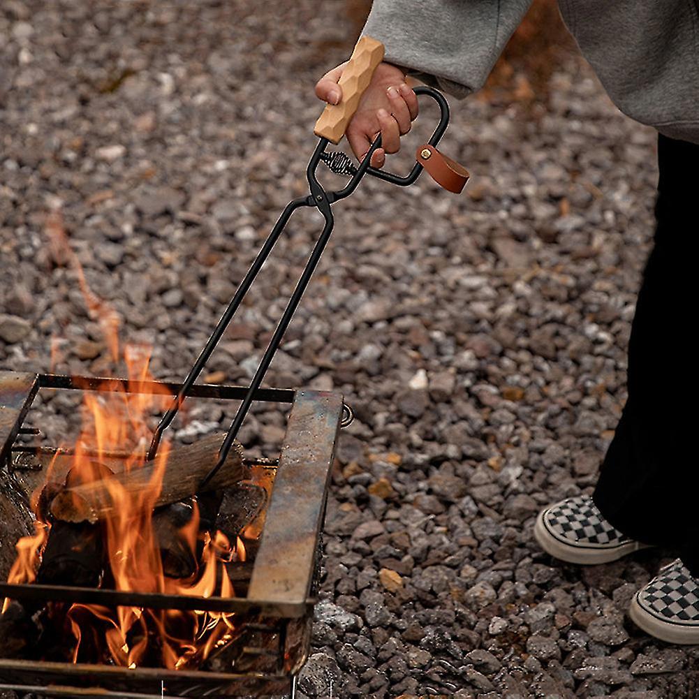 Mountainhiker Bbq Grilled Clamp Wood Handles Fireplace Tongs Portable For Campfire Cooking For Outdoor Camping Home Kitchen Tool