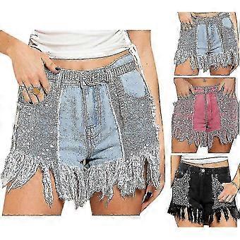 Rento leveälahkeiset shortsit rispaantuneella reunuksella mukavat kesä korkeavyötäröiset shortsit varten muoti eteenpäin naiset sininen XL