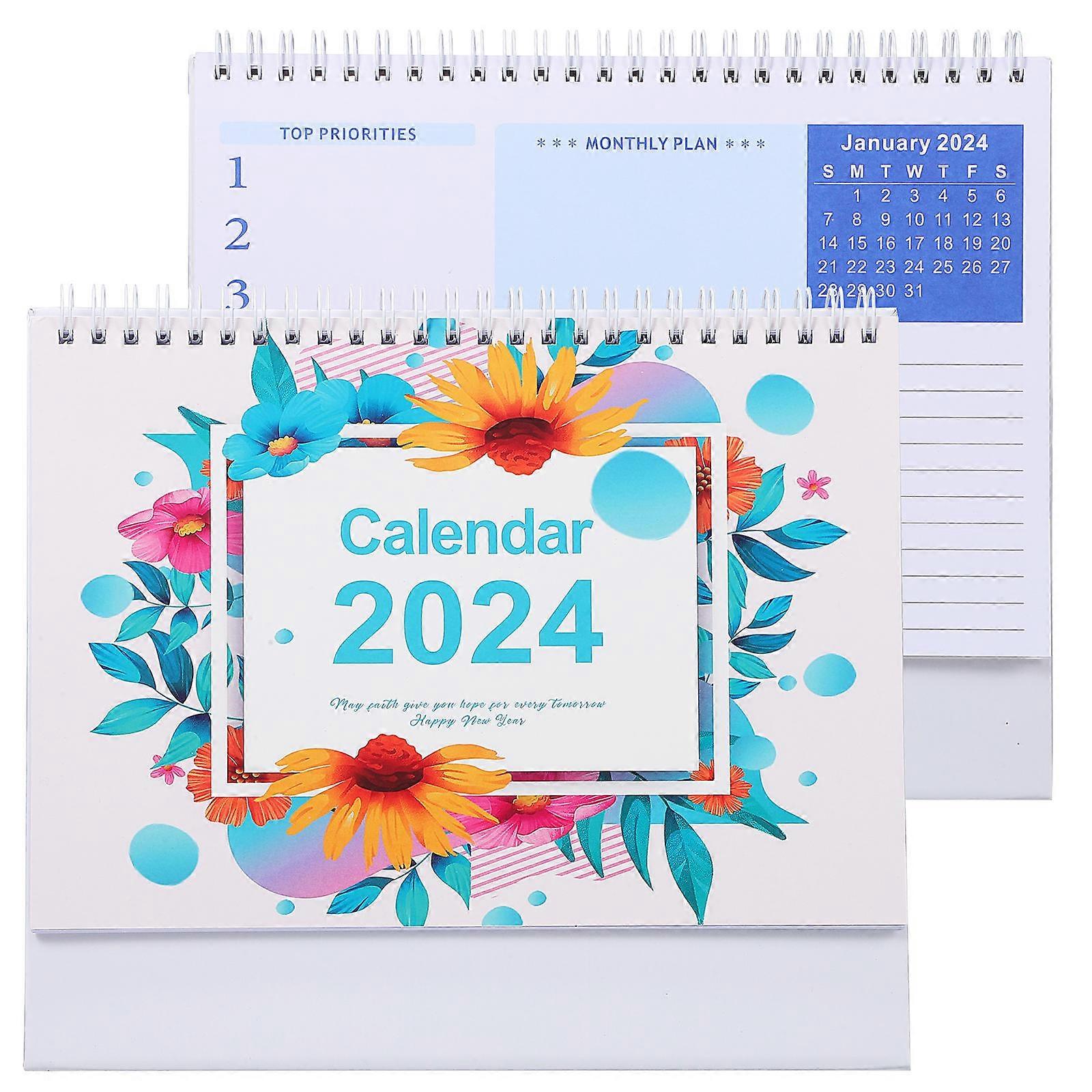 Multi Color Desk Calendar Standing Flip Calendar Ideal For Home Decoration January 2024 - December 2024 9.3X9.1X0.4In Note Taking 1 Set