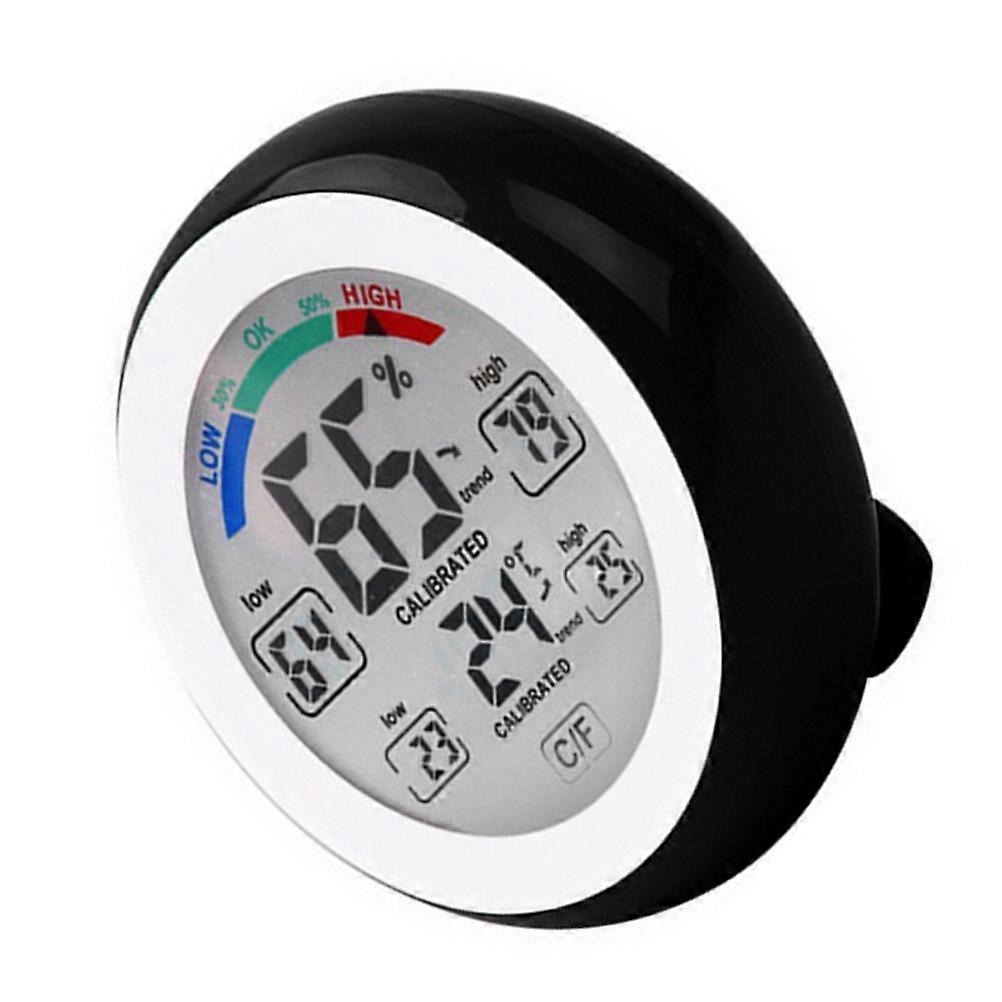 It is a high precision kids room , made from premium plastic and electronic components material, safe and practical. Perfect for baby room, child room and some other occasions use. Digital display function, convenient and accurate to read. Features -Color:Black -Material:plastic and electronic components -Size:8.50X8.50X2.50cm/3.34X3.34X0.98in - Note: without battery -Display the current temperature and humidity - degree centigrade/ fahrenheit scale switchable, easy to use -With humidity design, it will indicate the condition: low, normal and high -The humidity monitor can monitor humidity, which is very suitable for the monitoring environment of people with skin , etc. -It is very suitable for office, bedroom, greenhouse, living room, and it is very convenient to operate through the touch screen Package list: 1 x