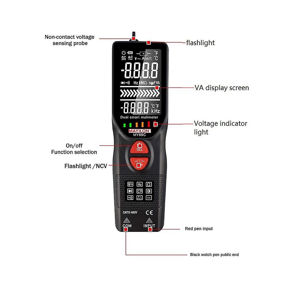 My88c Smart Multimeter Ncv Voltage Detector 6000 Counts Digital Lcd Pen Type Thermocouple Probe 0-