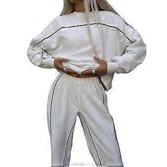 Women 2 Piece Lounge Sets Sweatsuit Fall Outfits Matching Wide Leg Pants Set Tracksuit Trendy Clothes White M