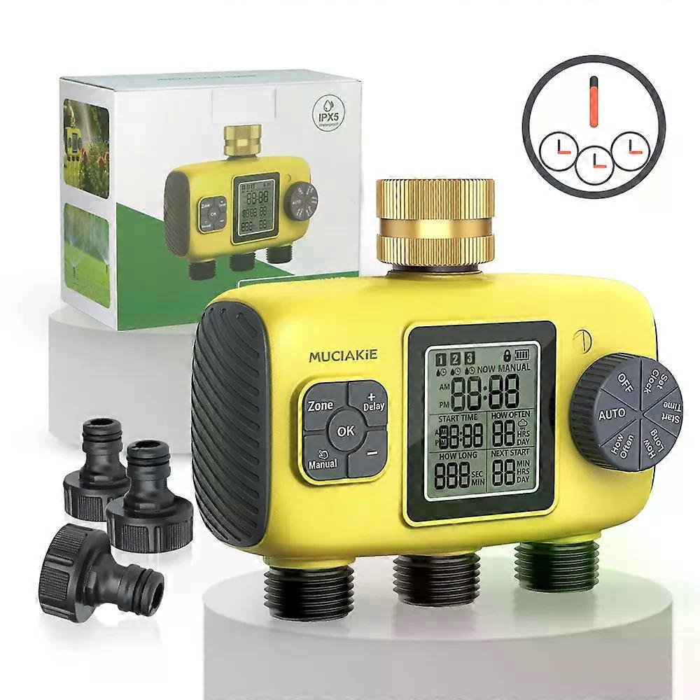 N365 Triple-Zone Garden Timer Automatic Irrigation Controller with 3 Independent Zones Rain Delay Child Lock Sequential Watering