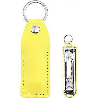 ماكينة قص الأظافر المحمولة من الفولاذ المقاوم للصدأ قاطع الأظافر القابل للطي مع حالة جلدية (أصفر)