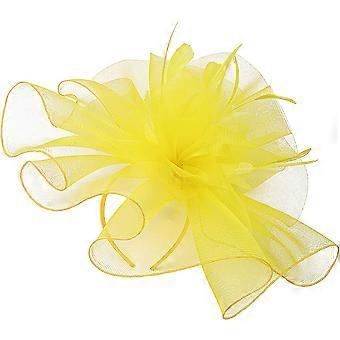 Tyylikäs auringonkukka- ja höyhenverkkohiuskoriste käytännöllinen polyesterikuvio naisille ja lapsille erityistilaisuuksiin, keltainen