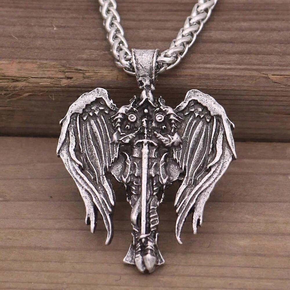 Antiquing Cross Wings Pendant Talisman Viking Men Neckalce Archangel StMichael Protect Pendant Angel Wings Jewelry
