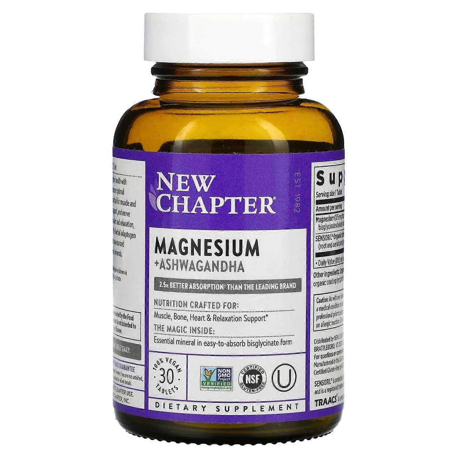 New Chapter, Magnesium + Ashwagandha, 30 Vegan Tablets