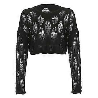 المرأة اقتصاص تريكو أعلى كم طويل جوفاء خارج كارديغان سترة المحاصيل الأعلى