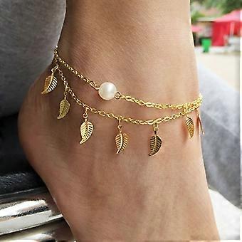 Lehti tupsut Kaksikerroksinen Faux Pearl Beach Sandaali Nilkka Ketju Jalka Rannekoru Nilkka