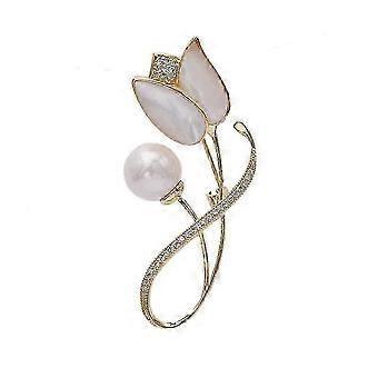 2025 Shell Tulip -kukkarintaneula naisille ja tytöille, muoti kristalli herkkä helmi strassi rintaneulat elegantti mekko asusteet korut boutonniere