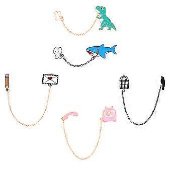 Cartoon Brooch Telephone Birdcage Alloy Dangle Chain Brooch 5Pcs Set