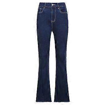 Naiset Korkeavyötäröinen Slim Flare Farkut Vintage Retro Frayed for Raw Helma Leveä lahkekello Alempi farkkuhousut Housut taskuilla 70-luvun katumuoti