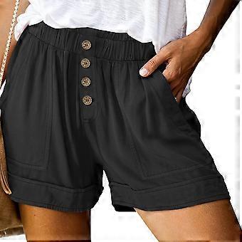 Naisten rento kesä mukavat shortsit korkea joustava vyötärö edessä nappi leveät lahkeet shortsit sivutaskuilla