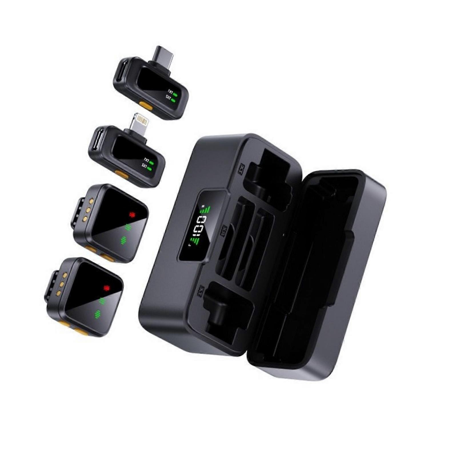 Noise Cancelling Wireless Microphone Rechargeable Charging Case Double Port For Content Creation Online Meetings Multicolor
