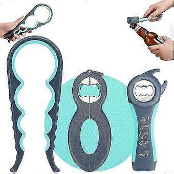 Non-Slip Blue Rubber 5-in-1 Can Opener Set with 3 Multi-Tool Pieces -HHY-