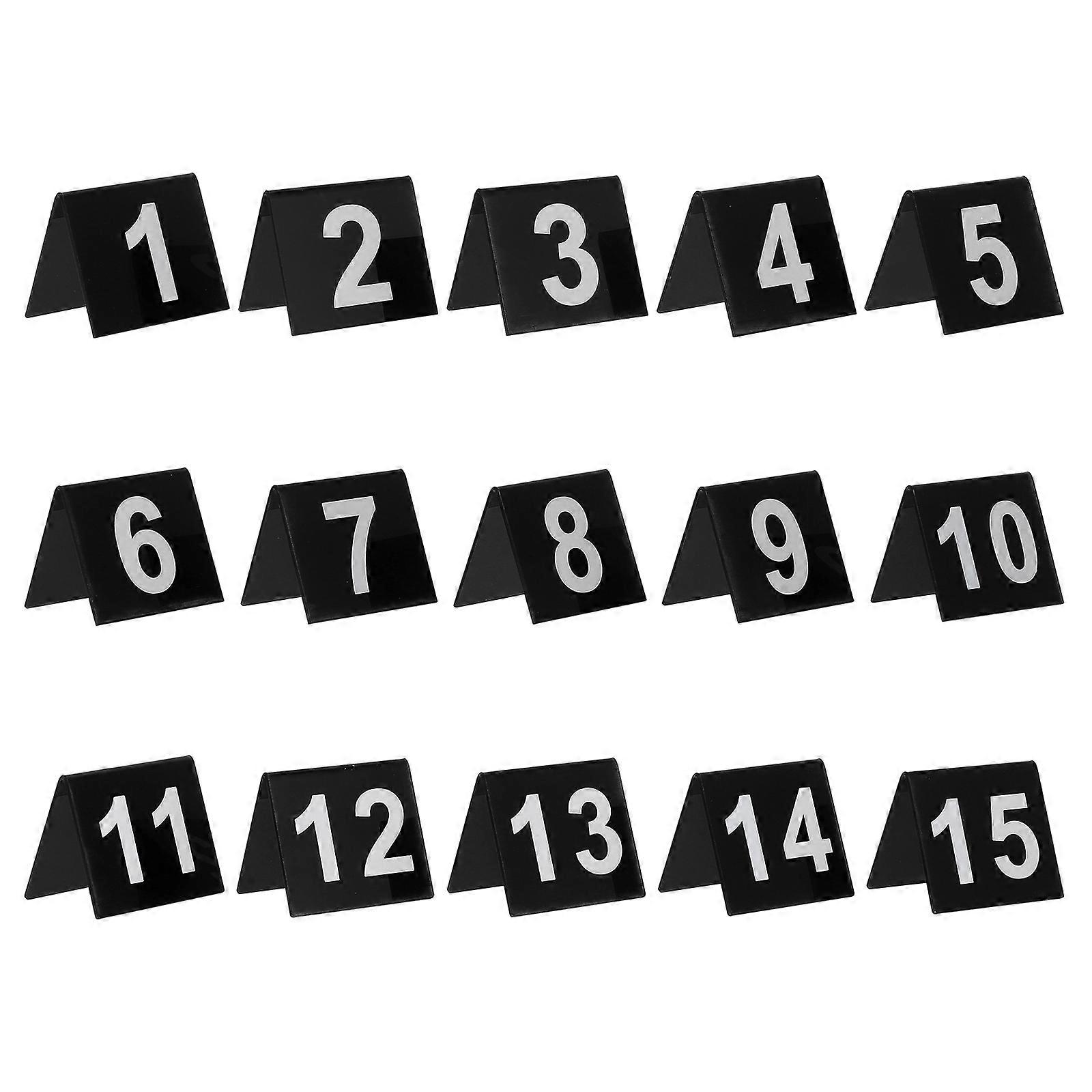 Number Markers Table Numbers Dual-sided Recognition Restaurant Use Black with Acrylic V-shaped 15Pcs