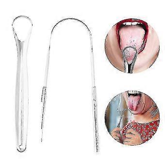 منظف لسان من الفولاذ المقاوم للصدأ ، طقم من قطعتين ، مضاد للبكتيريا وقابل لإعادة الاستخدام ، يحمي صحة الفم ويمنع رائحة الفم الكريهة