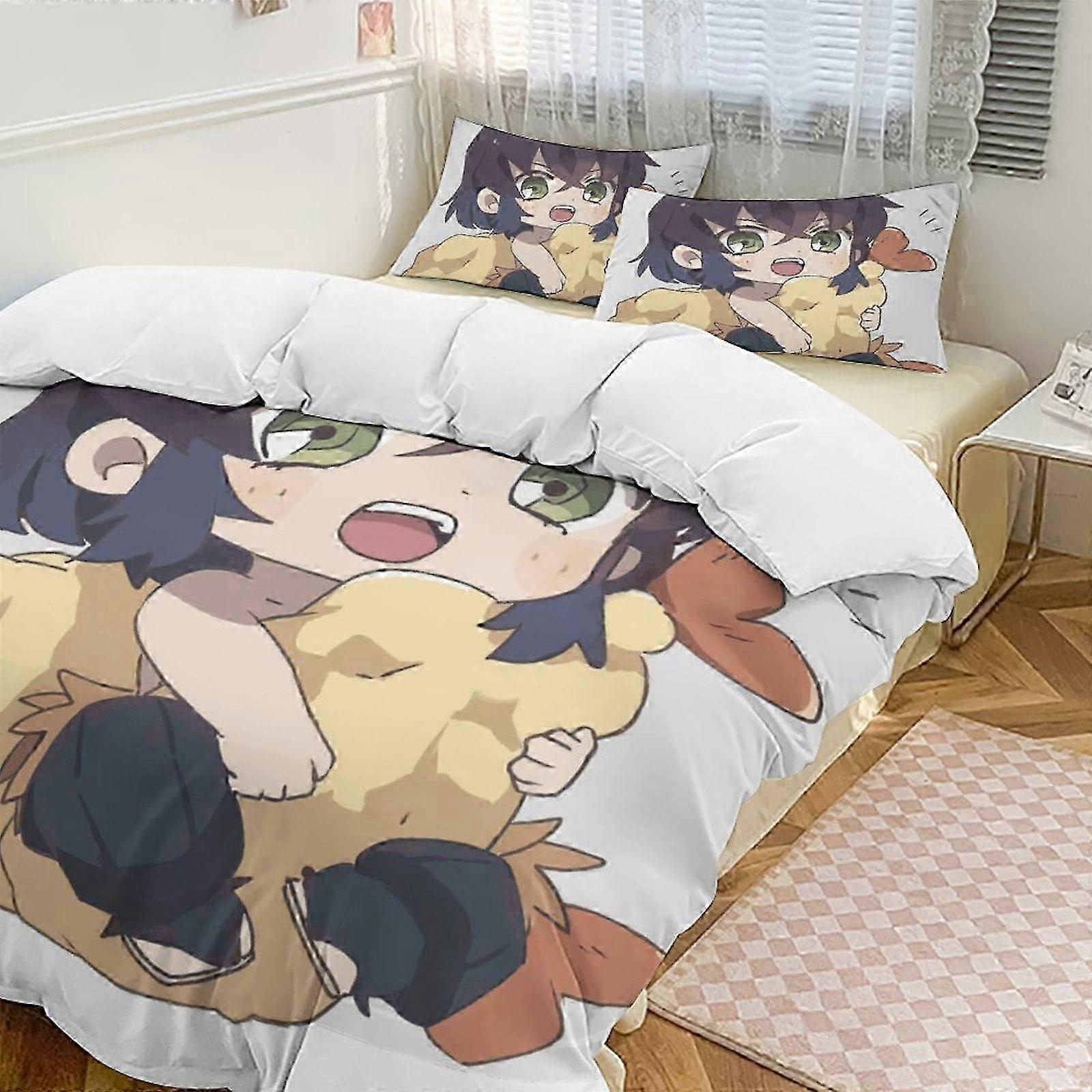 o1083 Bed Sheets Demon Blade Bedding Set, Comfortable and Lightweight3-Piece Cartoon Bedding Set (Available in Multiple Sizes) Lc (1 Duvet Cover and 2