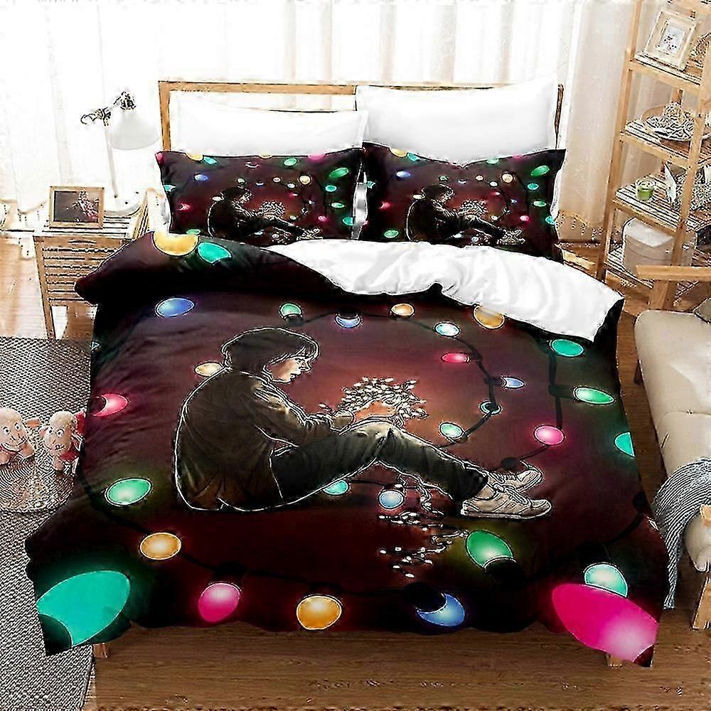 o3267 Bed Sheets Stranger Things Bedding Set Comfortable and Lightweight3-Piece Cartoon Bedding Set (Available in Multiple Sizes) (1 Duvet Cover and
